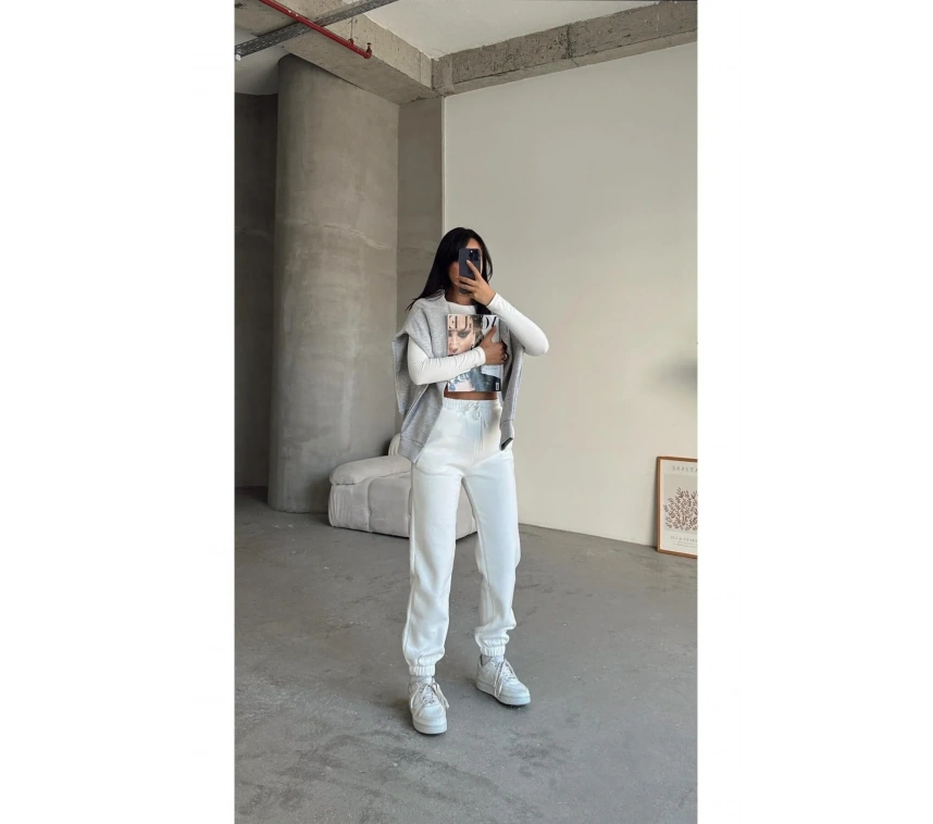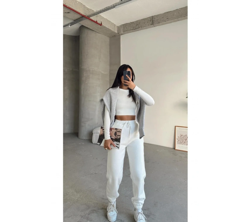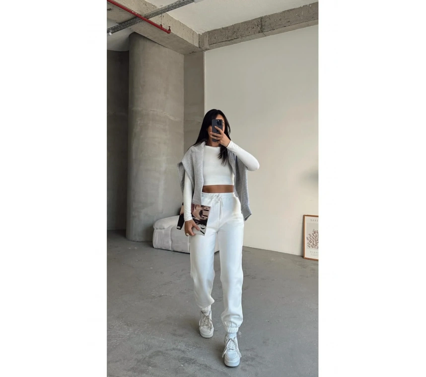 Ayrıca, şardonlu paça detayı sayesinde ayarlanabilir bir uzunluğa sahip olan eşofman altı, farklı bedenlere kolaylıkla uyum sağlar. Beyaz rengiyle her tarza ve kombinasyona uyum sağlayan bu eşofman altı, spor yaparken veya günlük hayatta stilinizi tamamlamanıza yardımcı olacaktır.
