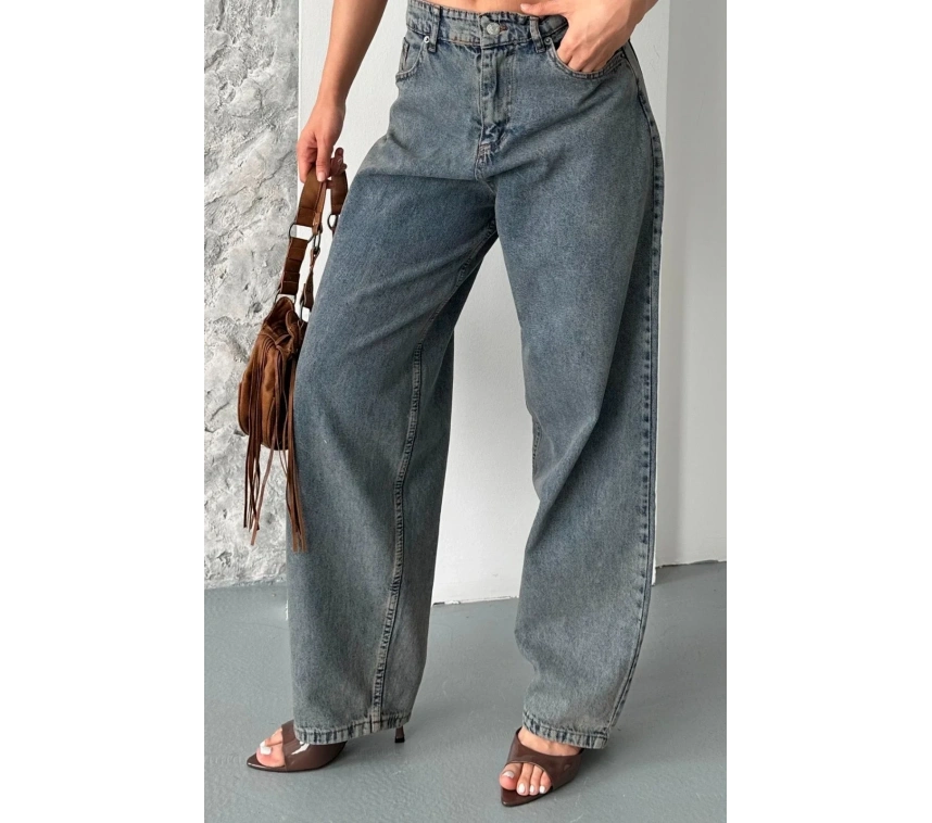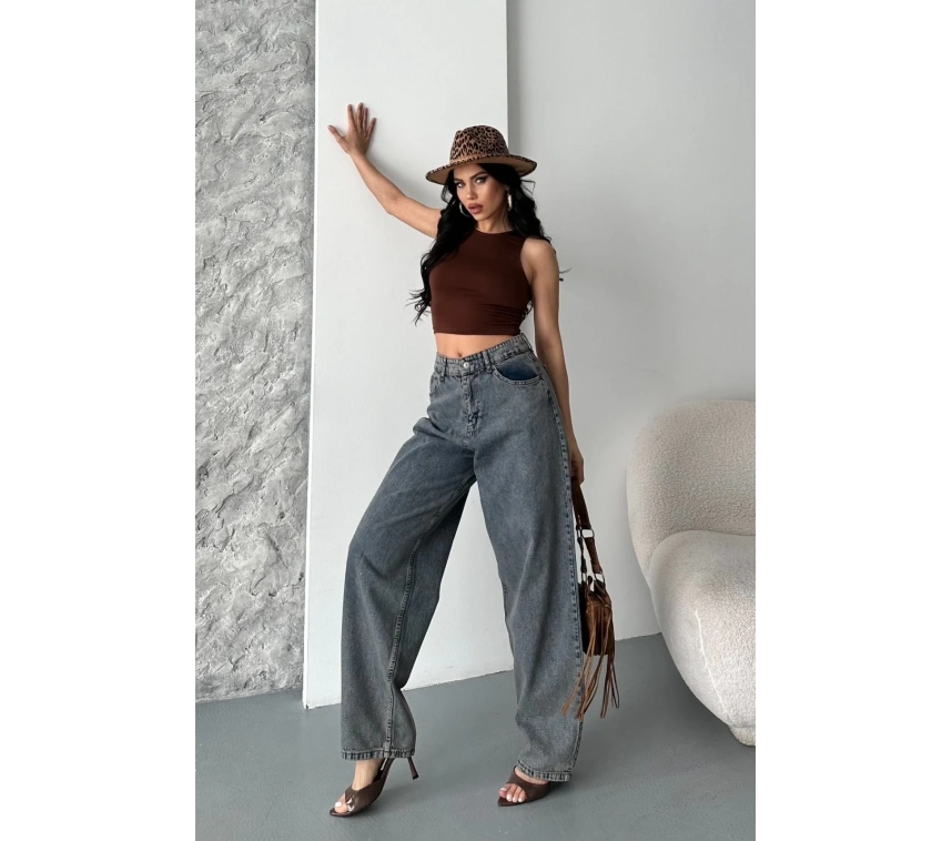 Baggy kar yıkama eskitme kahve jeans pantolon d2007, rahat ve şık bir görünüm sunar.