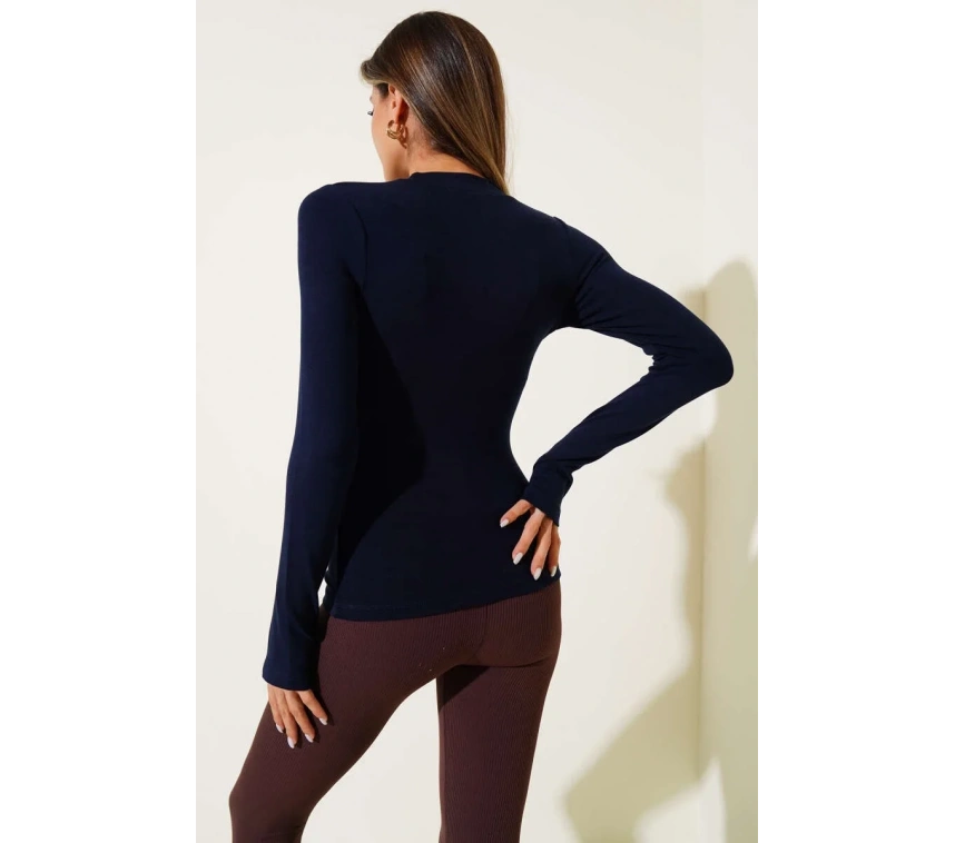 Basic Parmak Geçirme Detaylı Bluz Lacivert T4266, günlük şıklığınızı tamamlayacak ve fark yaratacak bir parçadır. Kendinizi özel hissetmek istediğiniz her an tercih edebileceğiniz bir seçenektir.