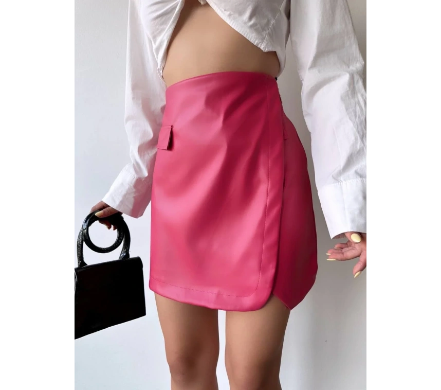 Şıklığı ve zarafeti bir arada sunan Cep detaylı oval kapaklı deri etek fuşya h240048, gardırobunuzun vazgeçilmez parçası olmaya aday.