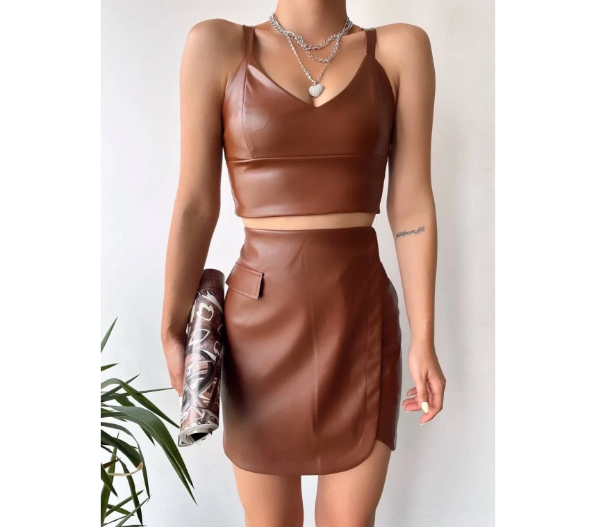 Şıklığı ve rahatlığı bir arada sunan Cep Detaylı Oval Kapaklı Deri Etek ile tarzınızı tamamlayabilirsiniz.