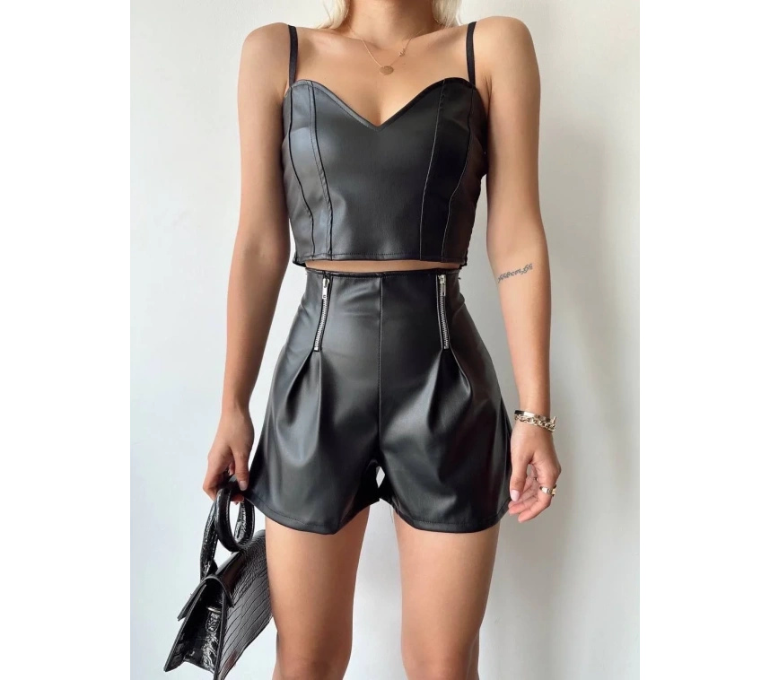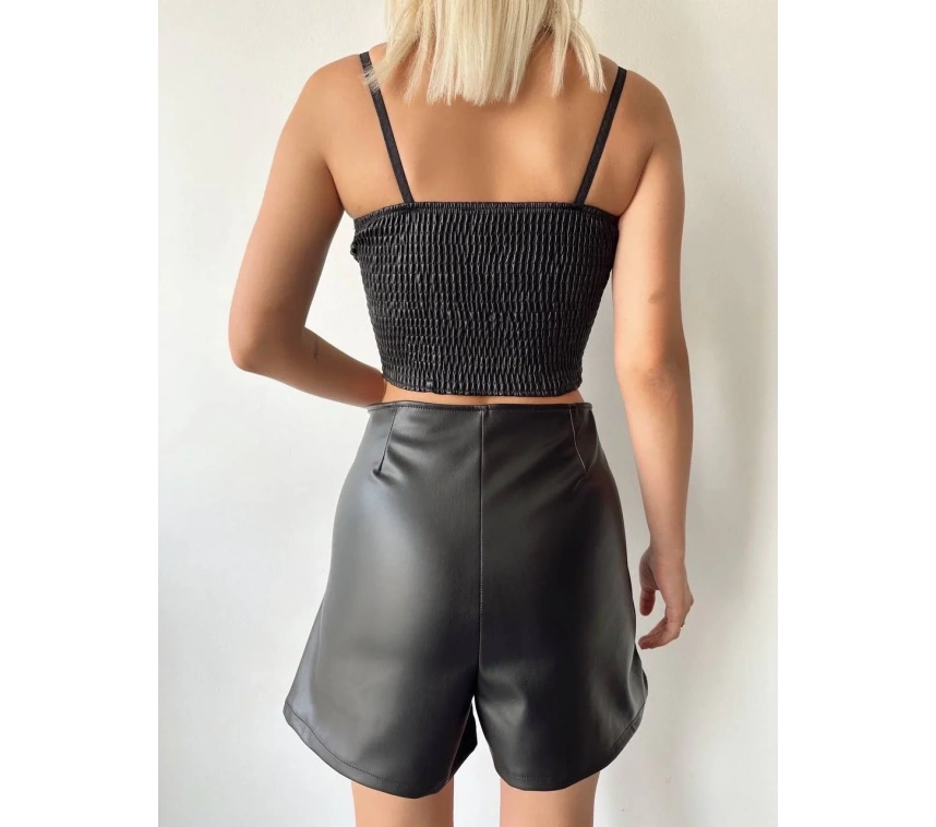 Çift fermuarlı deri şort h24394, günlük hayatta şıklığı ve konforu bir arada arayan kadınların favorisi olmaya aday!