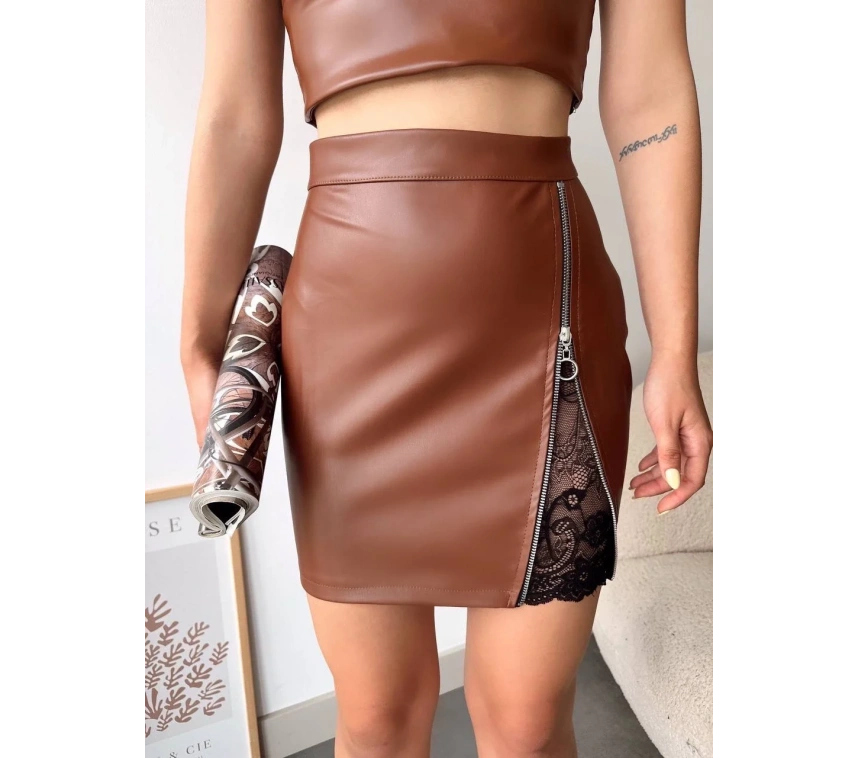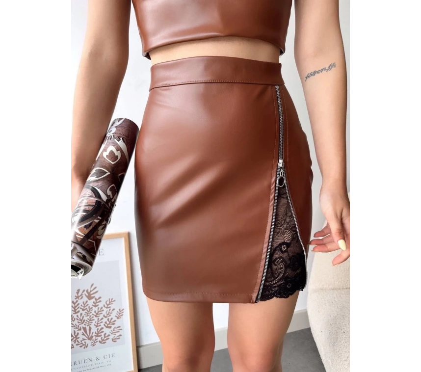 Şıklığı ve rahatlığı bir arada arayan kadınların favorisi olmaya aday Dantelli Fermuarlı Deri Etek'i hemen sepetinize ekleyin!