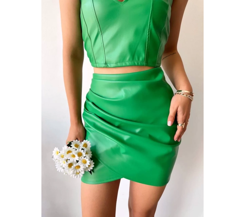Derinin şıklığı ile Drapeli Deri Etek Yeşil S24771, kadınların gardırobunda fark yaratacak bir parça. Kaliteli deri malzemesi ve detaylarıyla göz kamaştıran bu etek, şıklığı ve rahatlığı bir arada arayanların tercihi olacak.