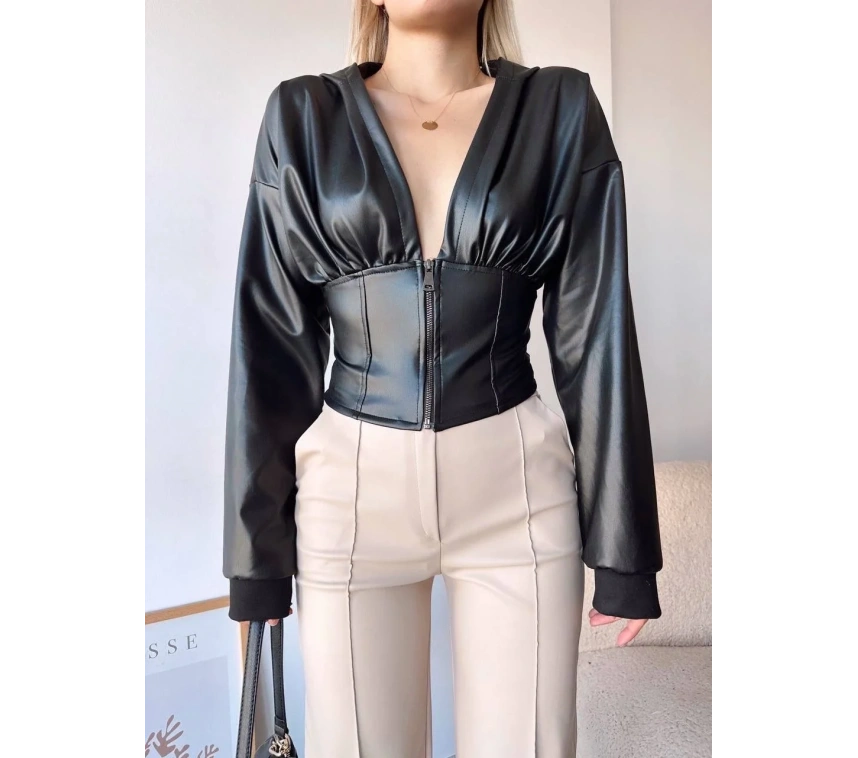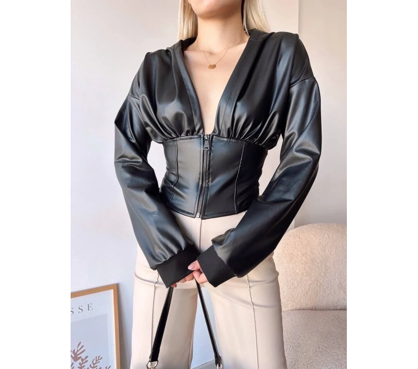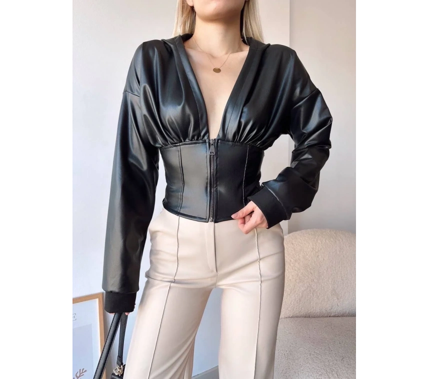 Şıklık ve rahatlık arayan kadınların tercihi olan siyah kapşonlu yarım fermuarlı ceket, her mevsim kullanım için idealdir.