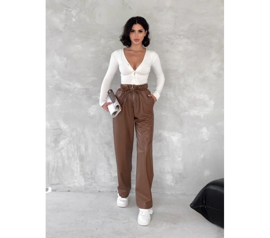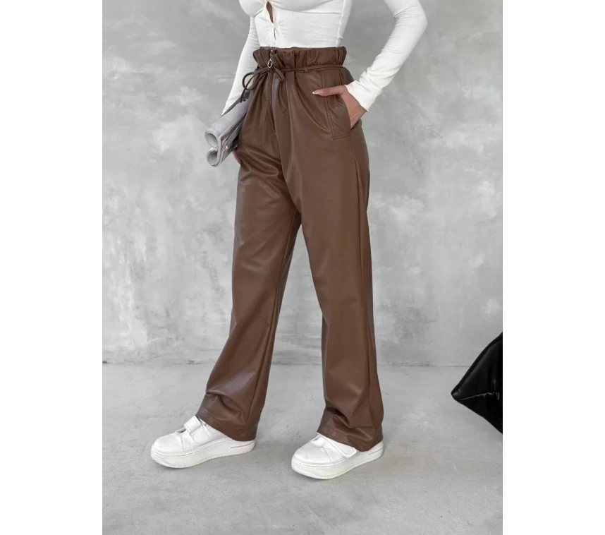 Şıklığı seven kadınların favorisi olmaya aday Kendinden İnce Kemerli Deri Pantolon Kahve T1178, hem şık hem de rahat bir seçenek arayanların tercihi olacak!