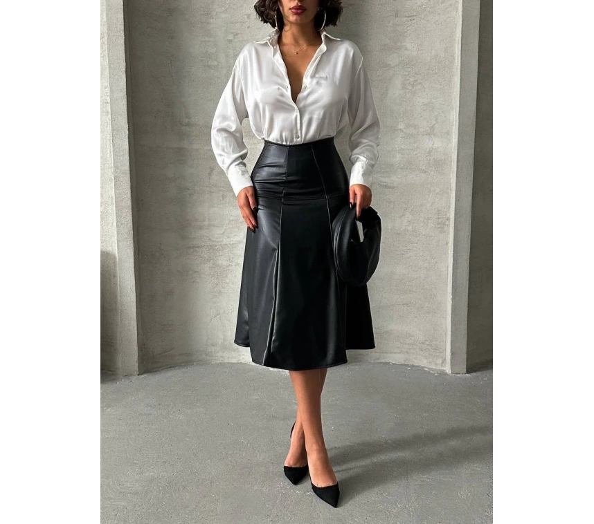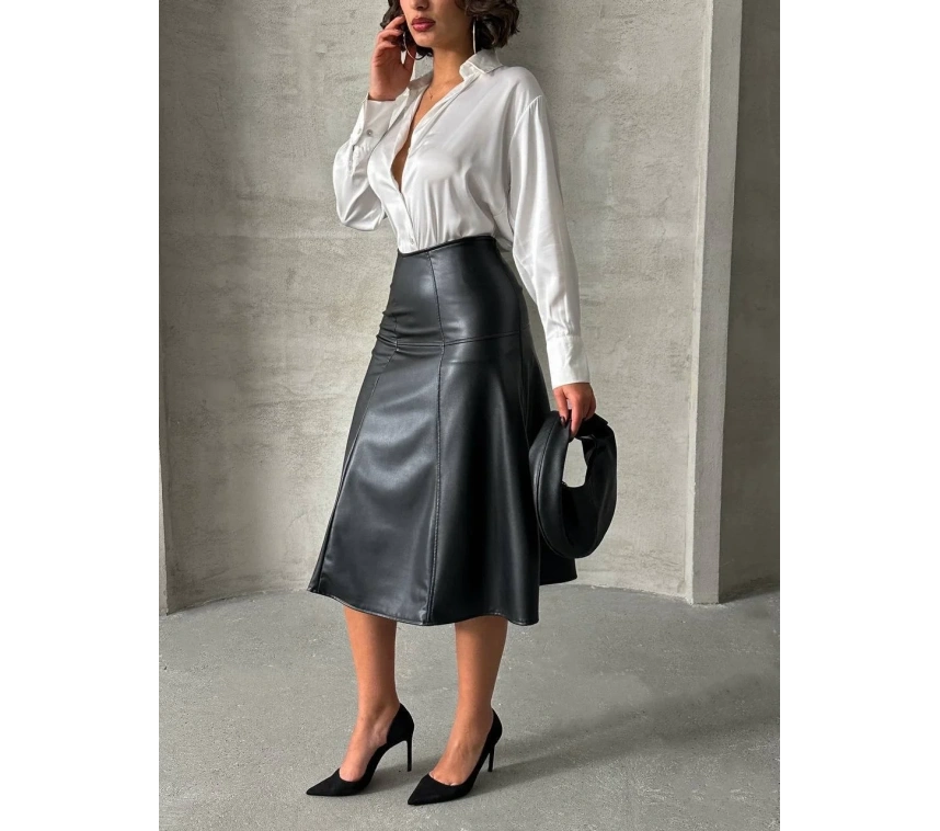Şıklığı ön planda tutan Komple parçalı deri eteği, gece davetlerinden günlük şıklığa kadar birçok farklı kombinle kullanabilirsiniz.