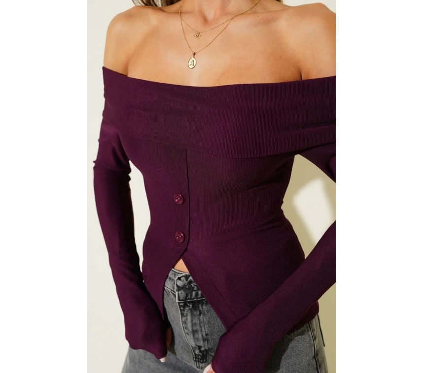 Madonna Yaka Düğmeli Bluz Mürdüm t4329, gardırobunuzun vazgeçilmez parçalarından biri olmaya aday!