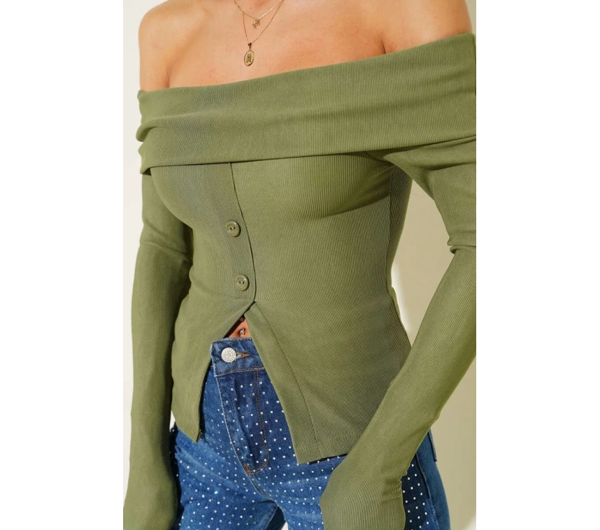Madonna Yaka Düğmeli Bluz, gardırobunuza şıklık katacak bir parça! Yeşil rengi ile dikkat çeken bluz, hem şık hem de rahat bir tasarıma sahiptir.