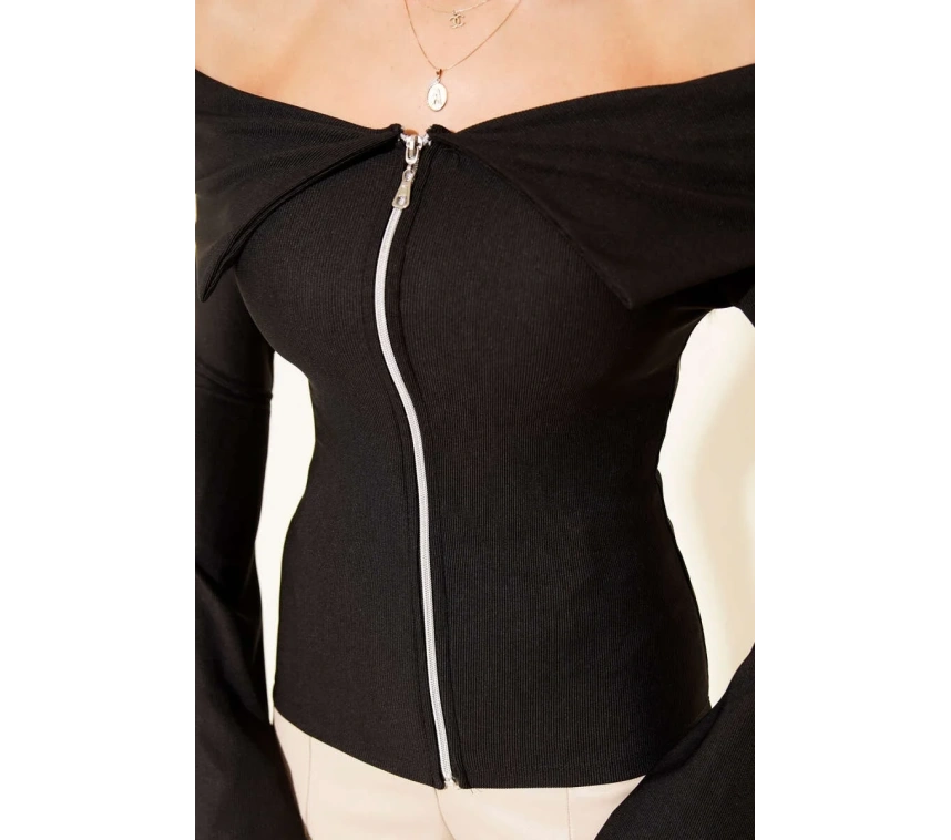 Fermuar detayı, bluza modern bir tarz kazandırırken, kullanımı da son derece pratiktir.