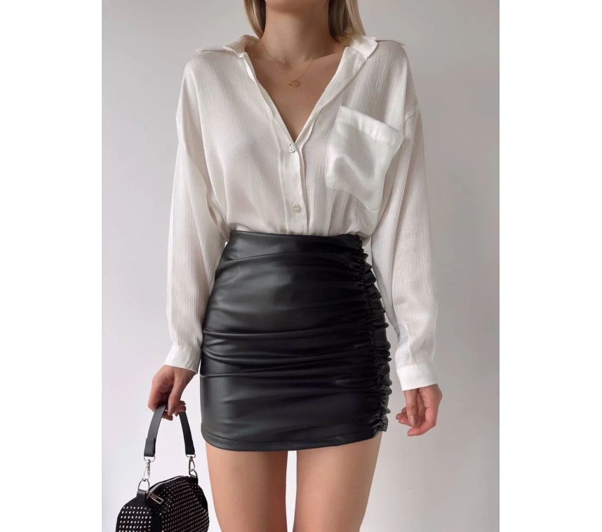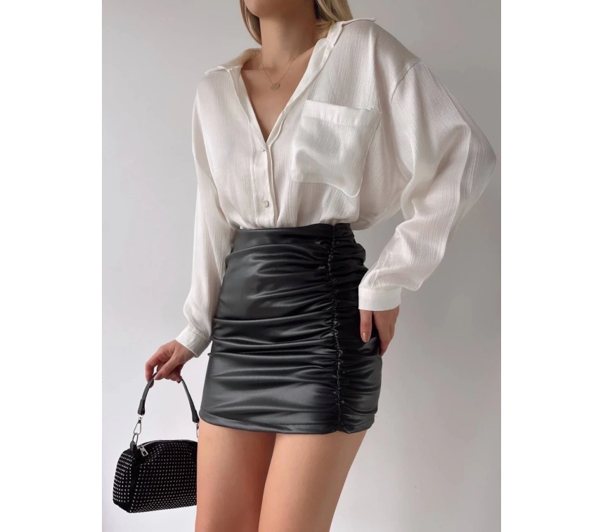 Farklı bir tarz arayan kadınların tercihi Önden Büzgülü Etek Siyah H24210, şıklığı ve rahatlığı bir arada sunuyor.