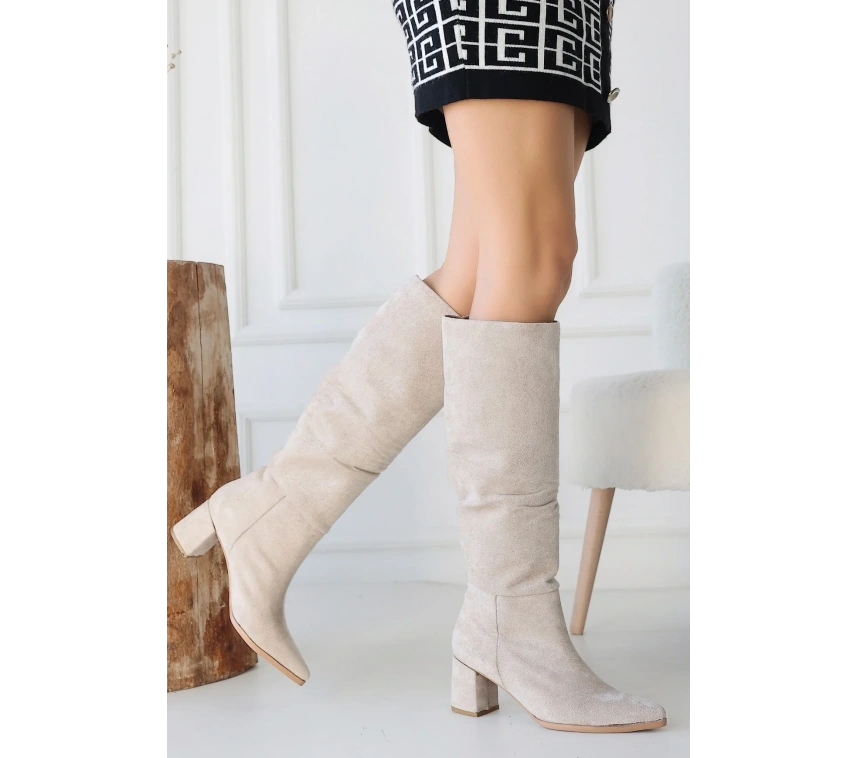 Detay: Topuklu Diz Altı Körüklü Çizme