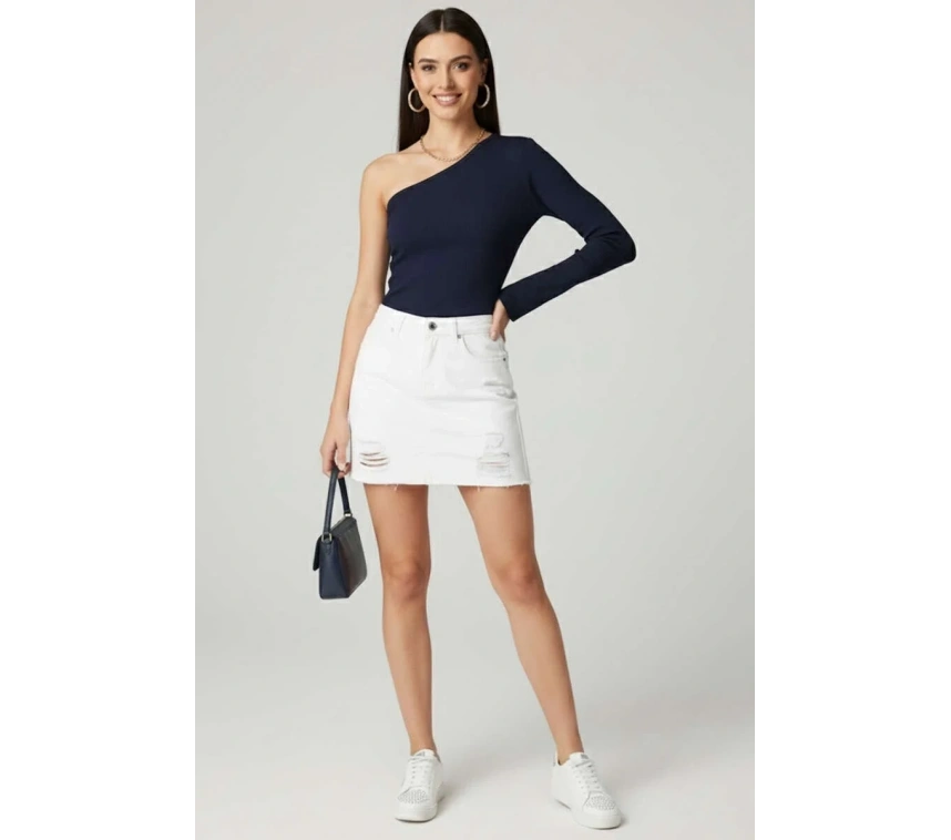 Şimdi Tek Omuzlu Basic Bluz Lacivert T4275'e sahip olun, şıklığınızı ön plana çıkarın!