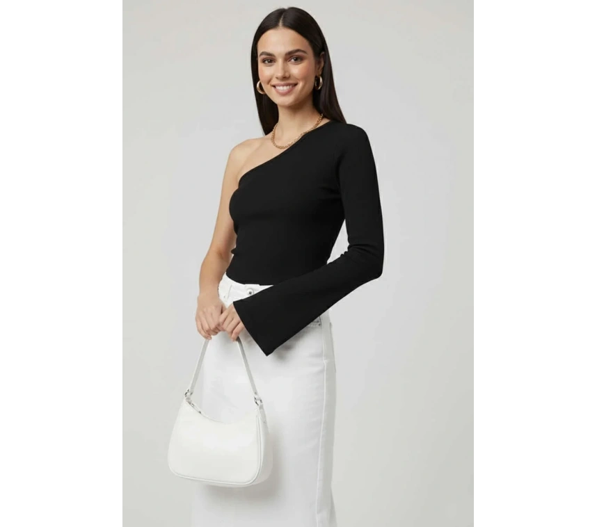 Şıklığı ve rahatlığı bir arada sunan Tek Omuzlu Basic Bluz Siyah T4275, gardırobunuzu şık bir dokunuşla tamamlamak için ideal bir seçenektir.