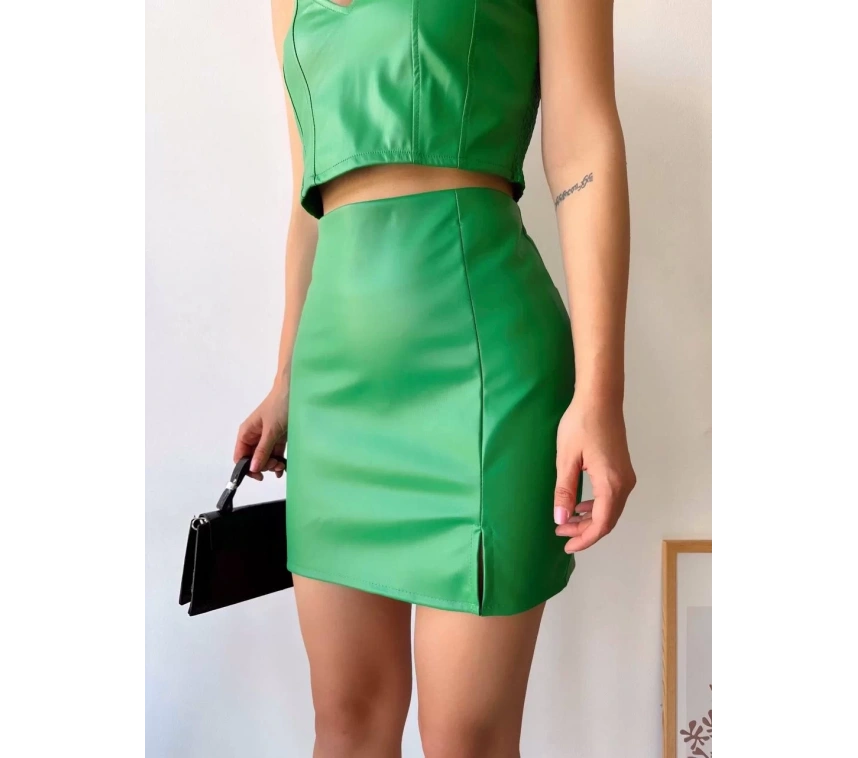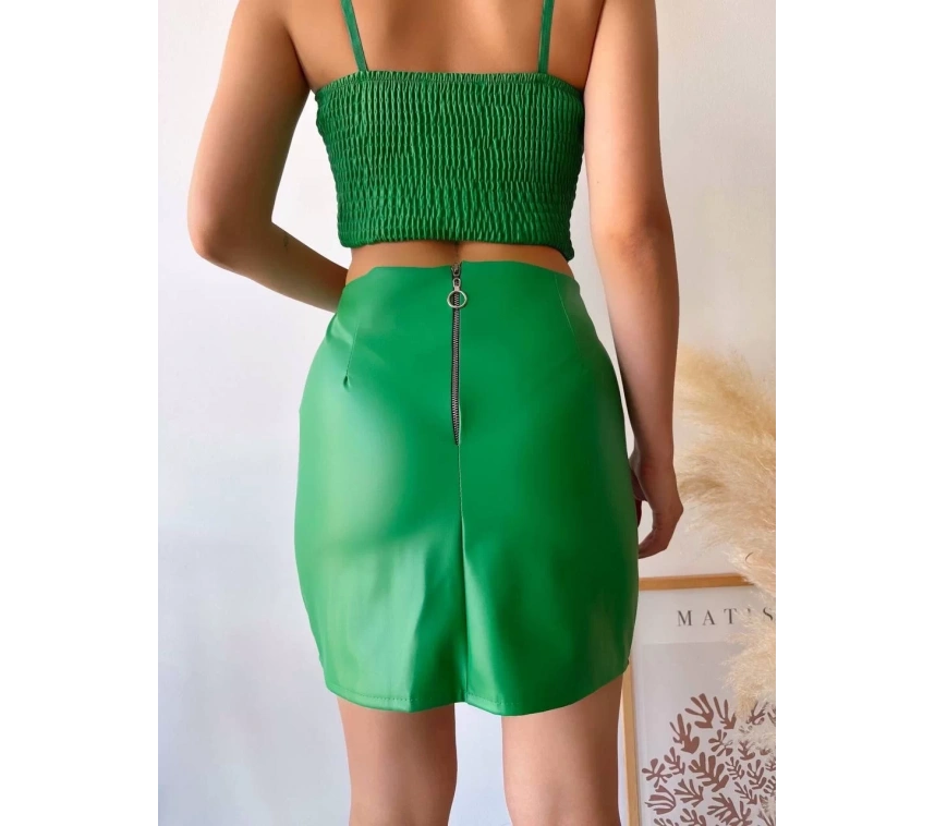 Şıklık ve modern tasarımı bir arada sunan Tek Yırtmaçlı Arkadan Fermuarlı Deri Etek Yeşil S24475, gardırobunuzun vazgeçilmezi olmaya aday! Ürün detayları: