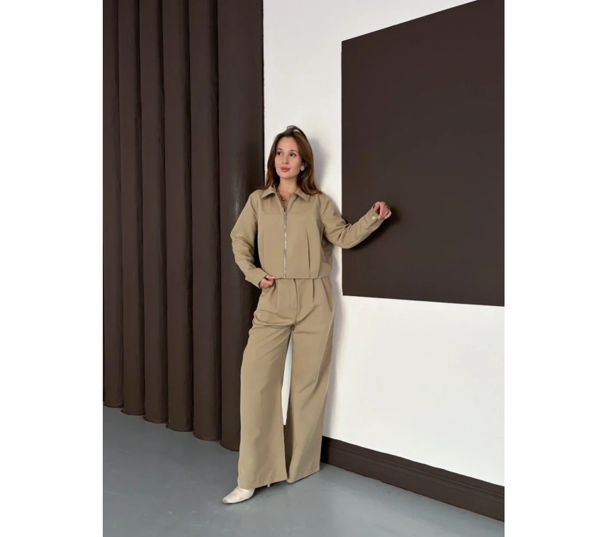 Renkli ve şık bir kombin için Trenç Takım Alt Üst Haki Ons!