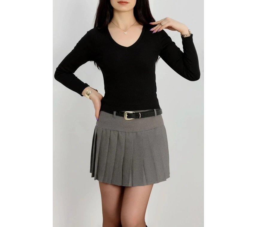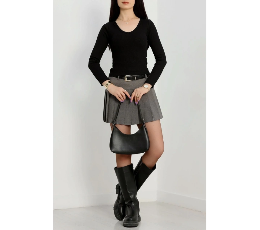 Şıklığı ve rahatlığı bir arada sunan V yaka kaşkorse bluz siyah a3699, gardırobunuzun vazgeçilmezi olmaya aday!